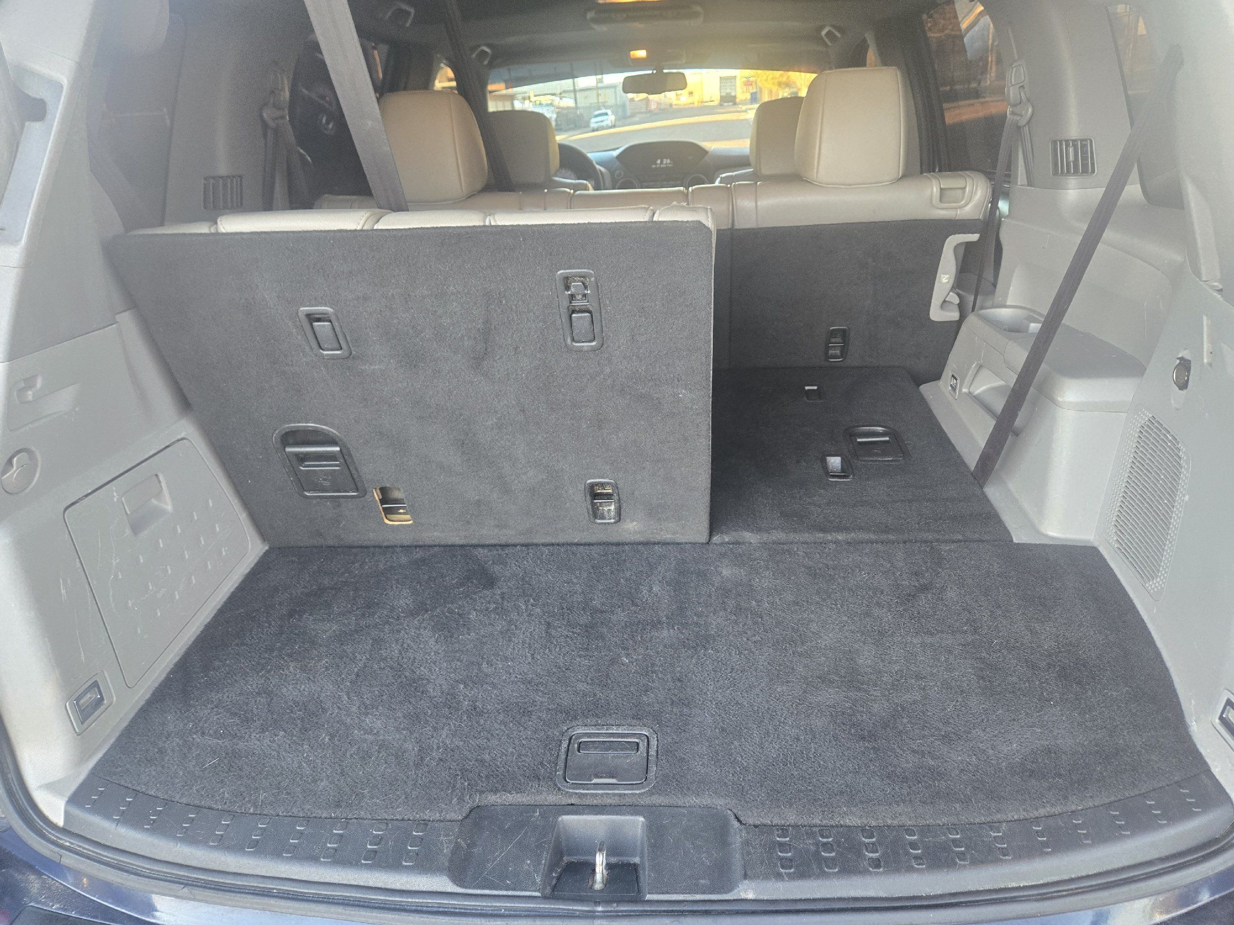 Third-row seatback upholstery: Carpet third-row seatback upholstery