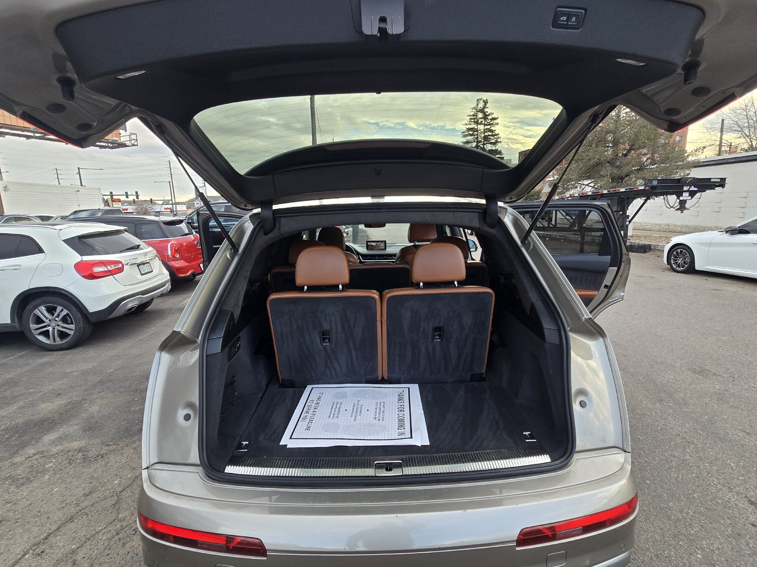 Third-row seatback upholstery: Carpet third-row seatback upholstery