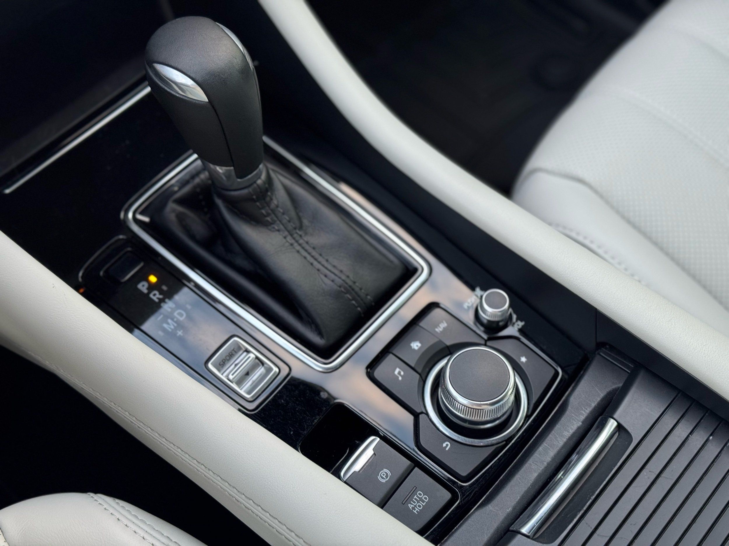 Gearshifter material: Leather and metal-look gear shifter material